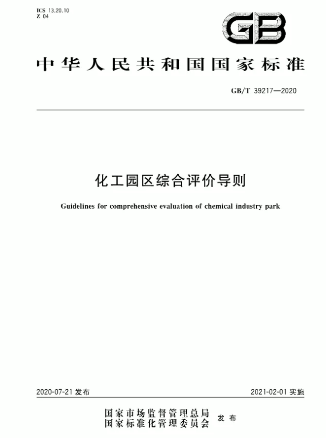 《化工园区综合评价导则》(GB/T 39217-2020)国家标准正式发布,于2021年2月1日开始实施。